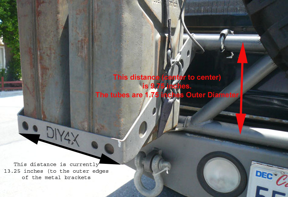 1.) I'd like a new, slighly wider rack, to hold two plastic gas/water cans. I will provide the cans/jugs (have them shipped directly to you)